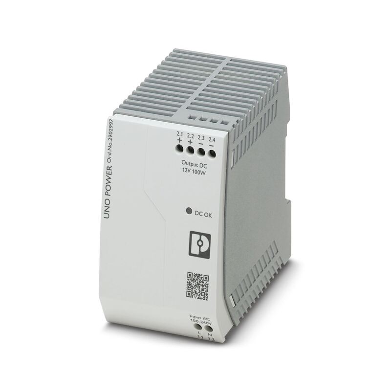Thanks to their high power density, compact UNO POWER power supplies are the ideal solution for loads up to 240 W, particularly in compact control boxes. The power supply units are available in various performance classes and overall widths. Their high degree of efficiency and low idling losses ensure a high level of energy efficiency.